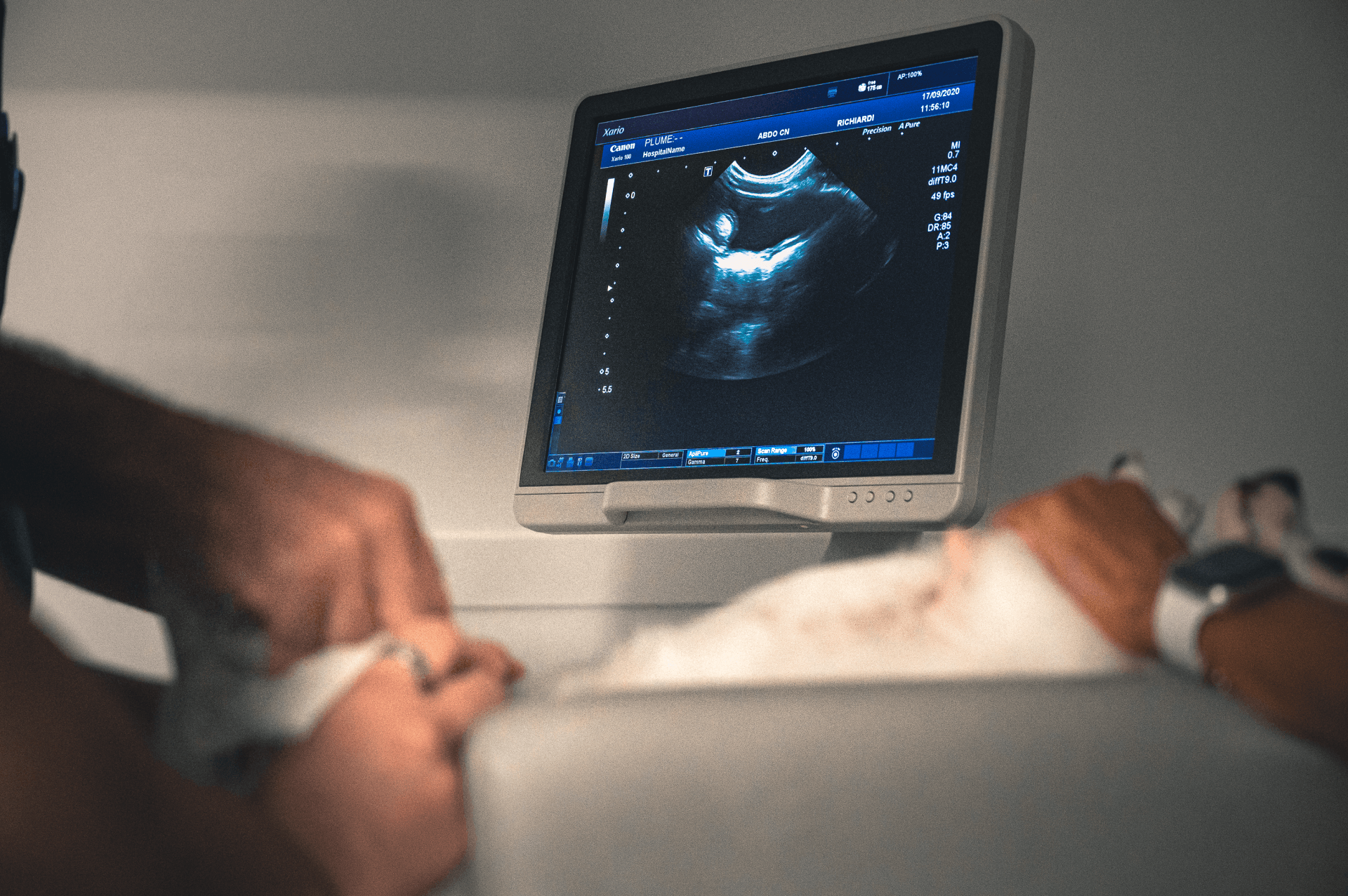 Selon la pathologie recherchée, nous pouvons réaliser une échographie abdominale ou thoracique.