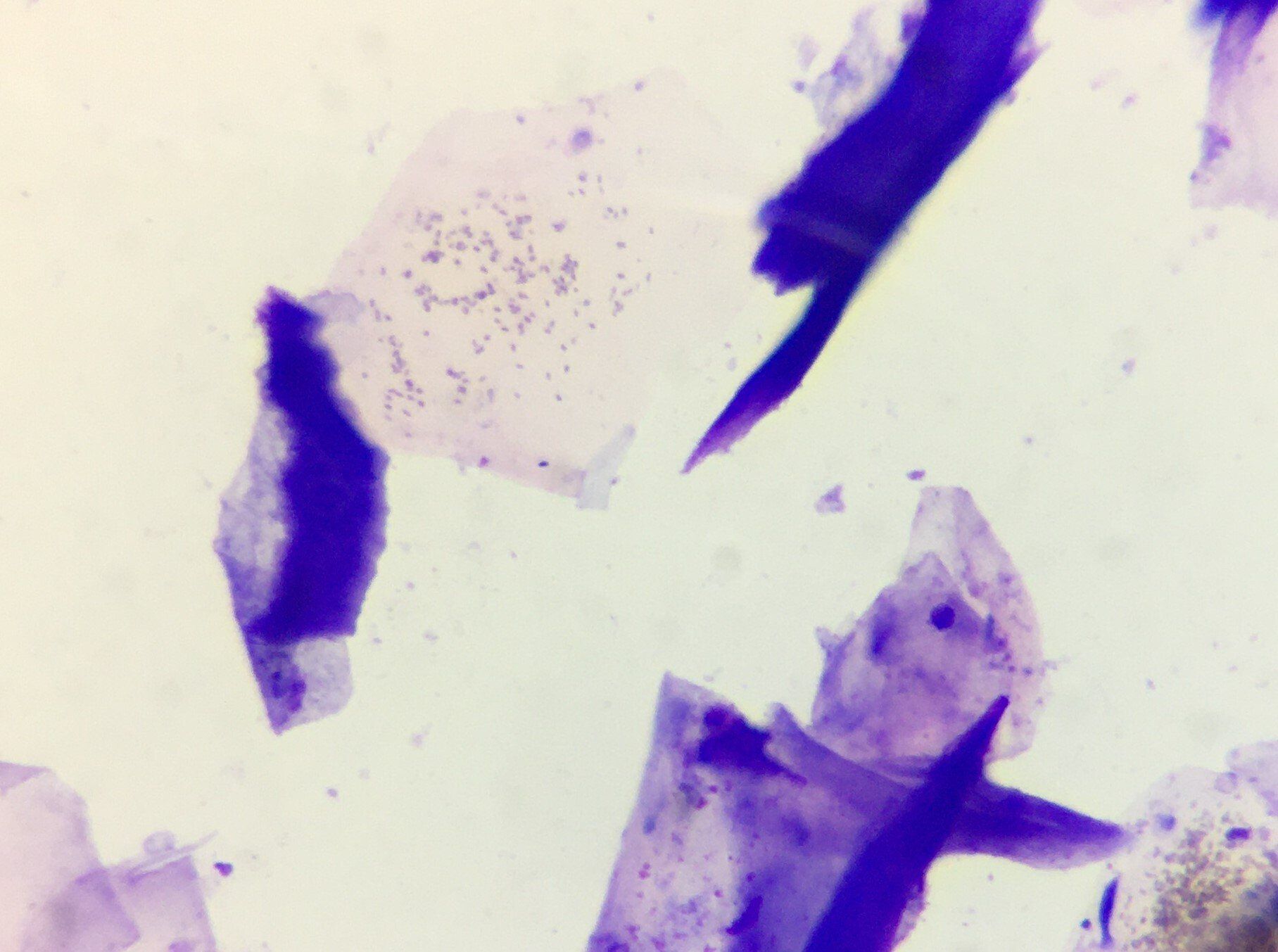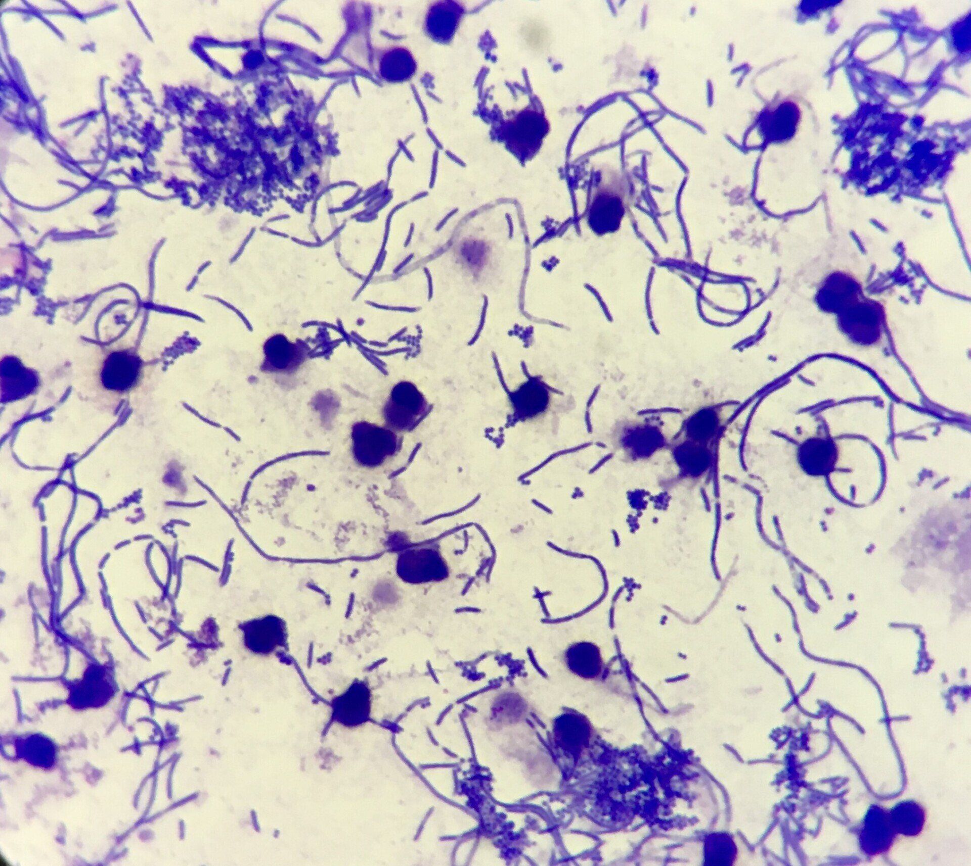 Après préparation du prélèvement (centrifugation, coloration...), le contenu est examiné minutieusement au microscope.